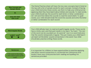 This school year, your child’s teacher will be using the UFLI Foundations program for reading and spelling instruction. Your child will be learning new concepts (sounds and letter patterns) to build their skills in reading and spelling words. The UFLI Foundations program includes Home Practice sheets to help families support their child’s learning at home. This is a guide for how to use these UFLI Foundations Home Practise sheets.
